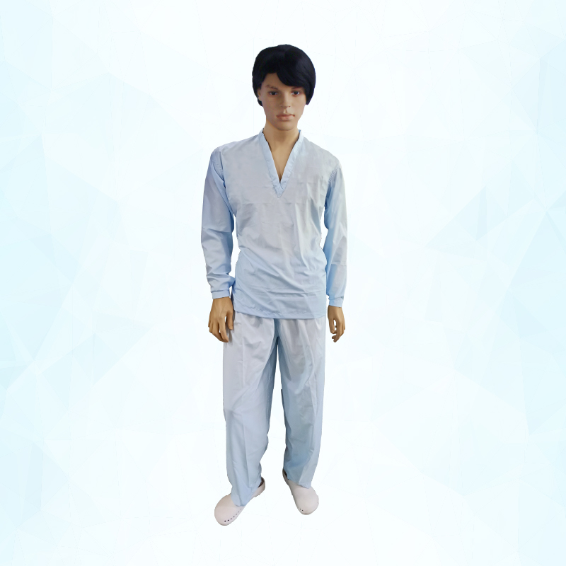 This cleanroom garment features a V-collar design and snap adjustments at the cuffs and ankles for a secure, customized fit. It includes an elasticated waist with an inside tie-on for easy adjustment and offers options for elastic or knit cuffs and ankles. Made from 100% lint-free polyester, the garment is fully autoclavable, ensuring durability, comfort, and effective contamination control in cleanroom environments.